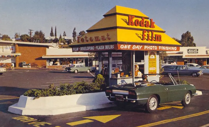 Due to the yellow roofs and typography that resembled Kodak packaging, many people believed that Fotomat was owned by Kodak.